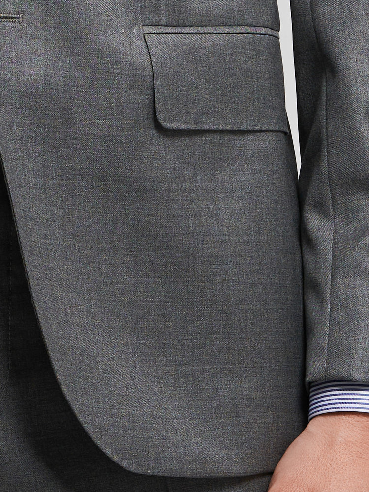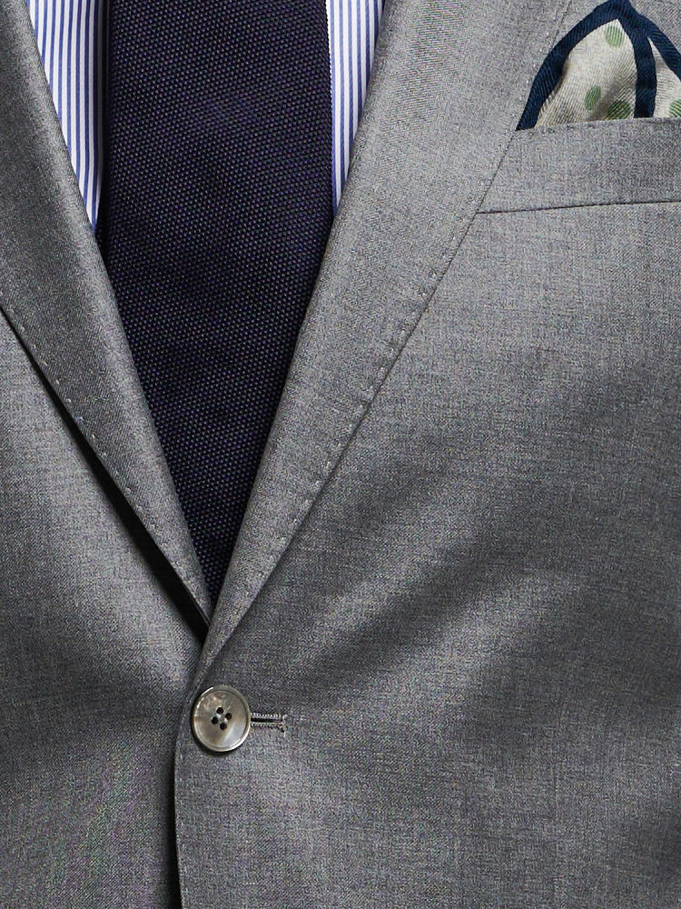This APOLLO is a slim fit suit in a smooth light grey wool woven by Italian mill Vitale Barberis Canonico.