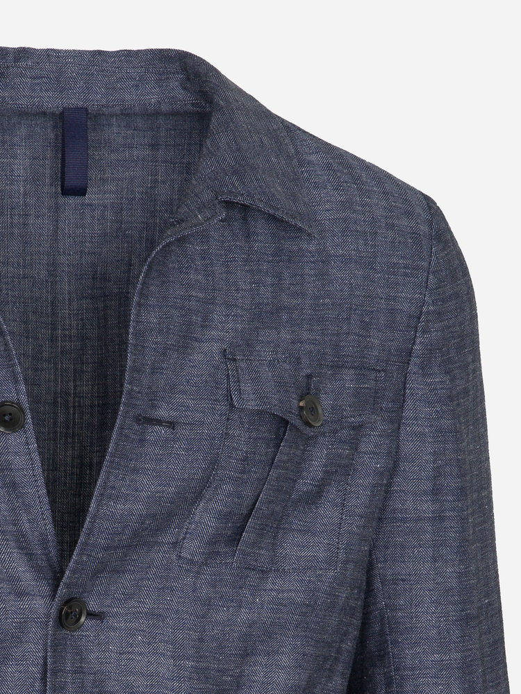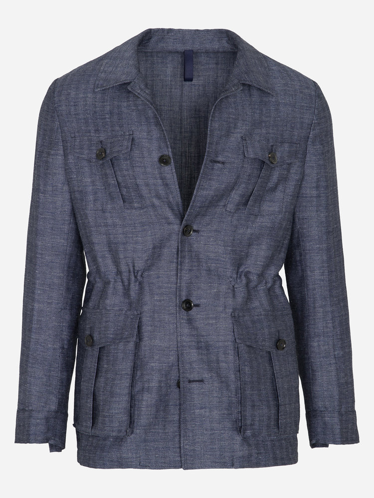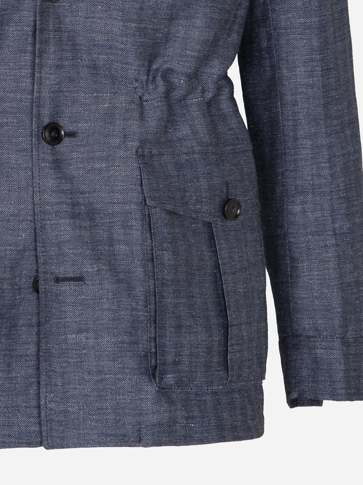 Blue Linen Herringbone Safari Jacket