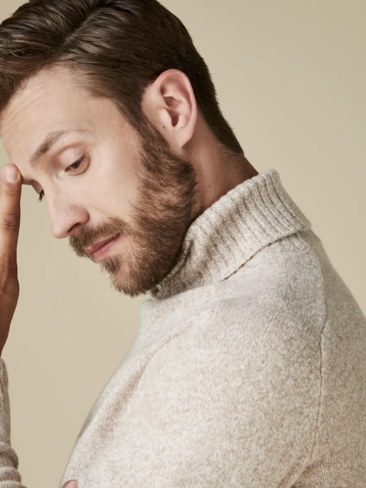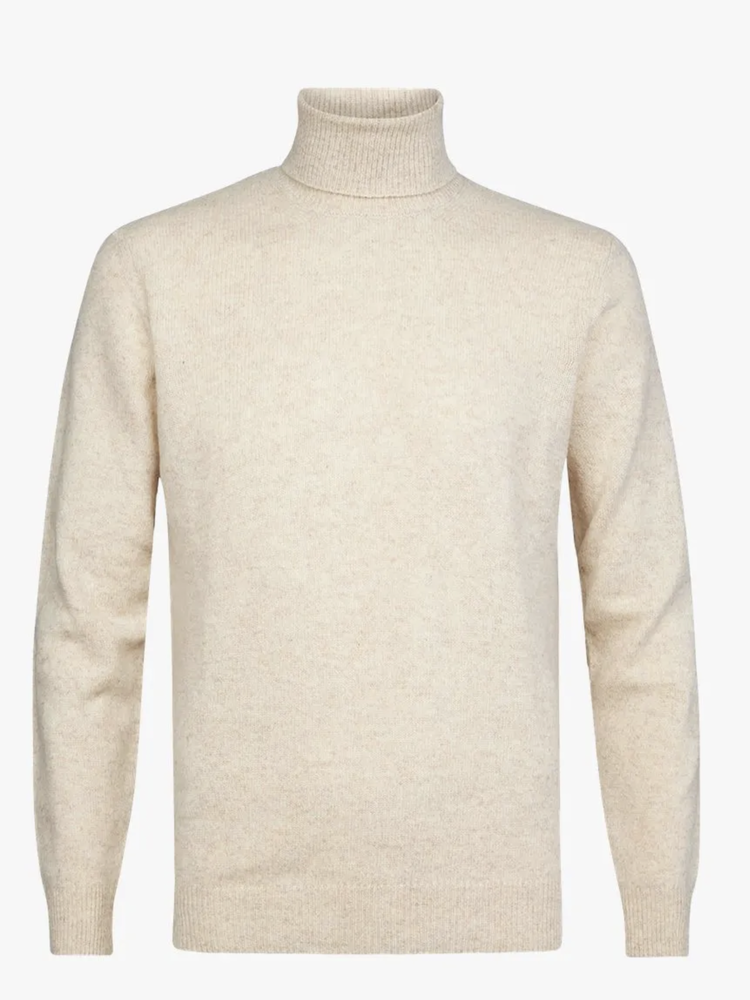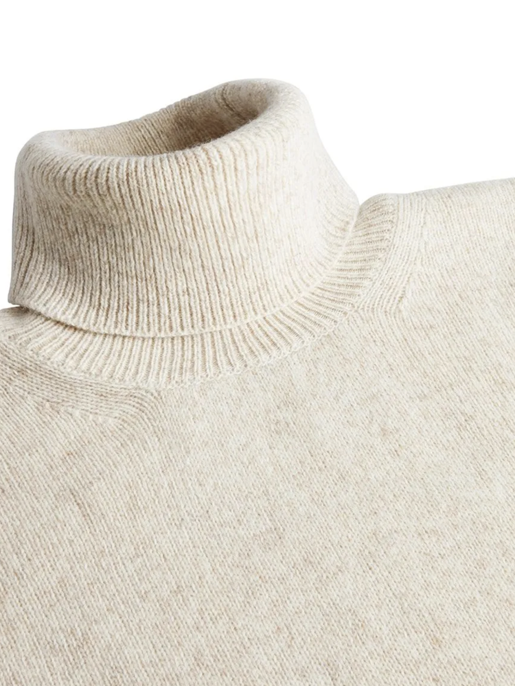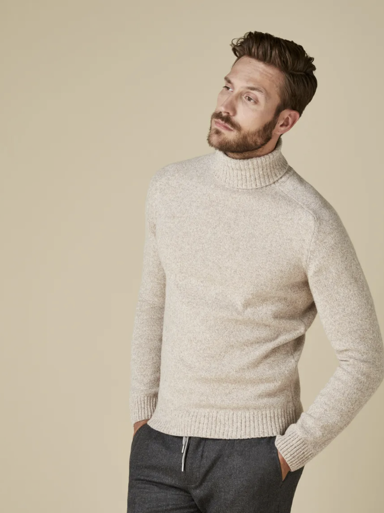 This is the perfect winter item. The turtleneck in a beige colour is knit from a high quality Italian, two tone yarn. The wool blend also keeps you nice and warm.