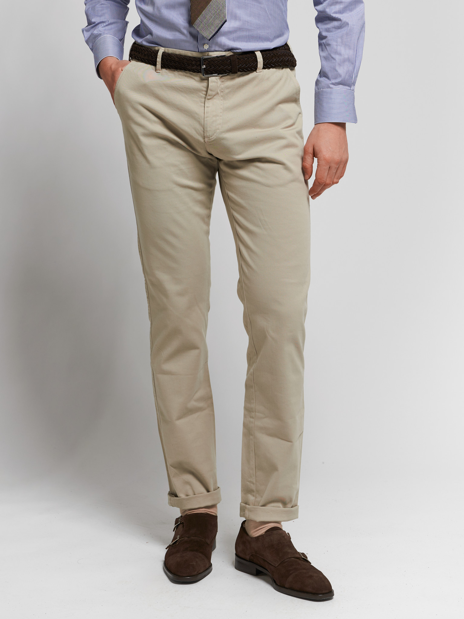 Wij vinden dat onze chino's met alles gedragen kunnen worden. Ze zitten fijn op de lijn tussen dressy en casual. Wij combineren ze graag met casual jasjes en shirts, maar gooien er ook graag een trui of t-shirt boven.