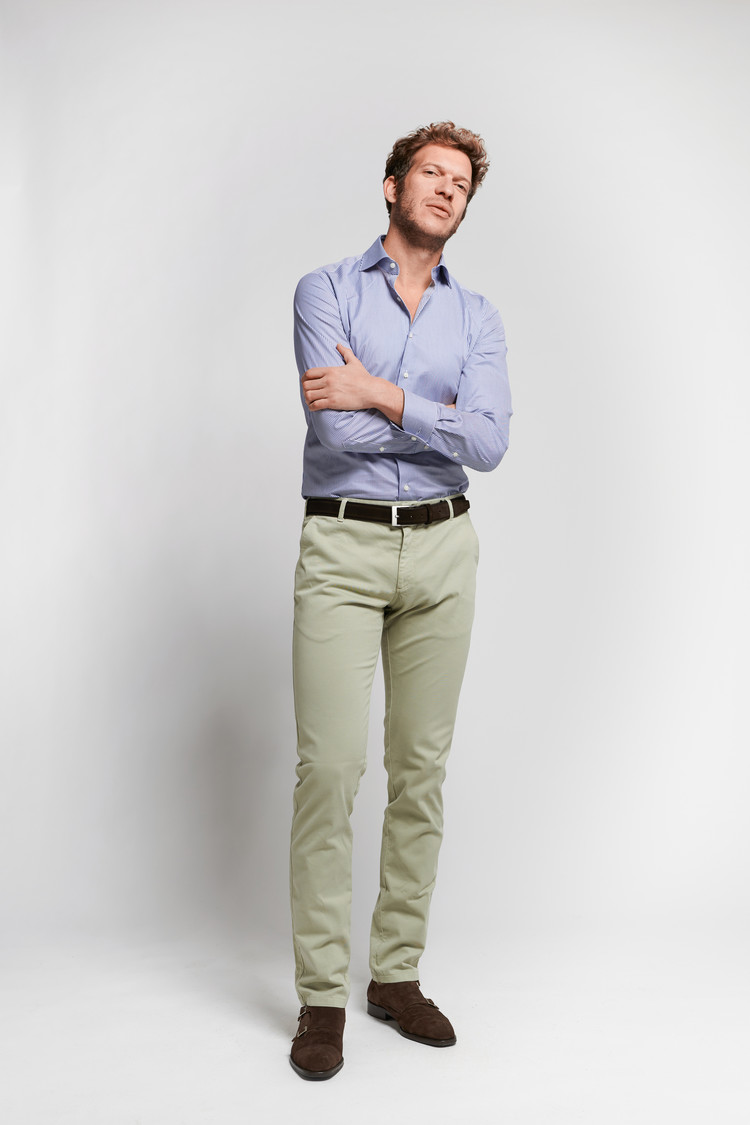 Wij vinden dat onze chino's met alles gedragen kunnen worden. Ze zitten fijn op de lijn tussen dressy en casual. Wij combineren ze graag met casual jasjes en shirts, maar gooien er ook graag een trui of t-shirt boven.