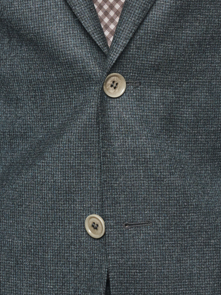 - Slim fit- Lichte schoudervulling- Rever met inkeping- Opgestikte zakken- 2-knoops sluiting- Volledig gevoerd
