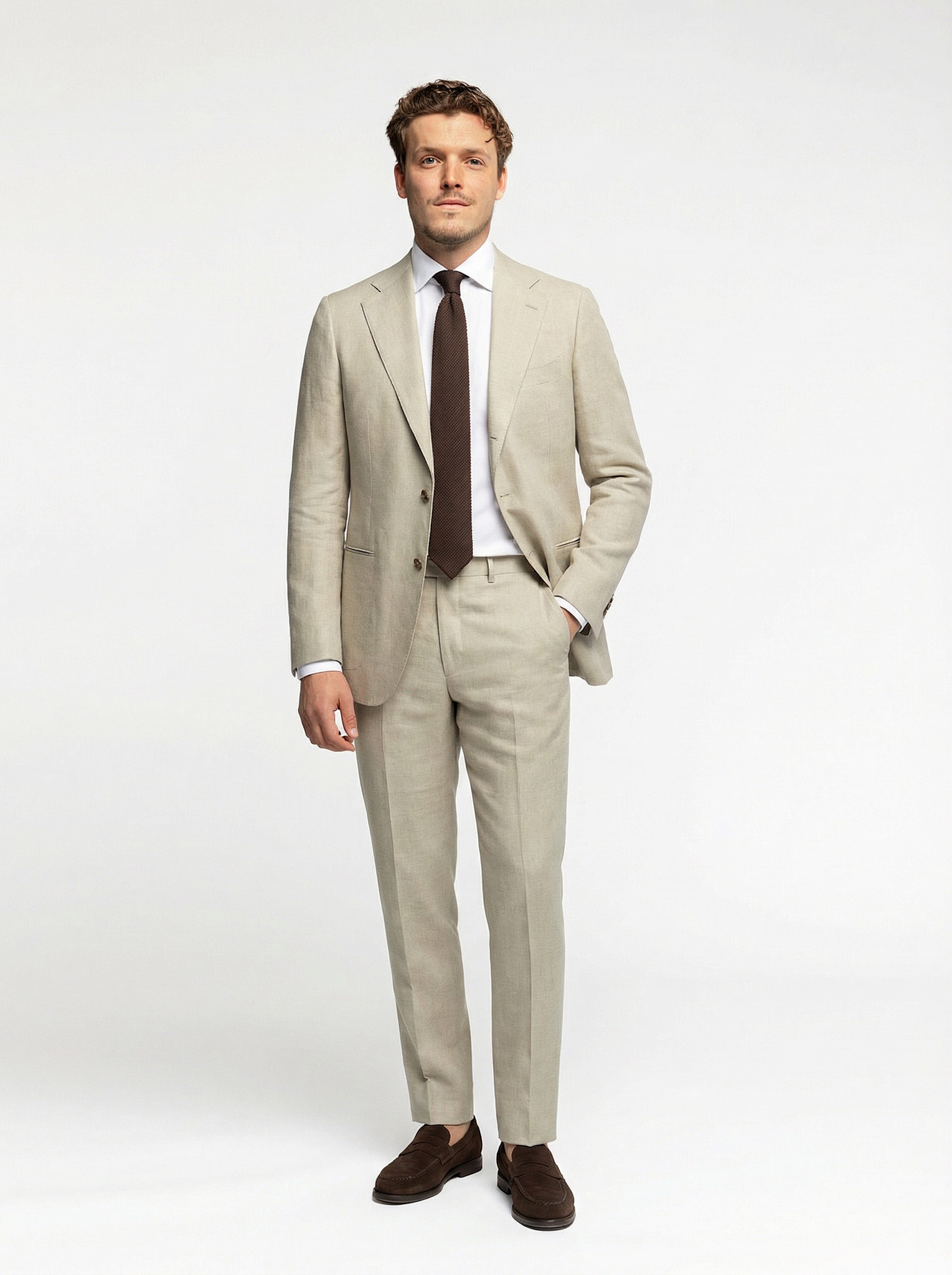 Beige Wool-Linen Blend Suit