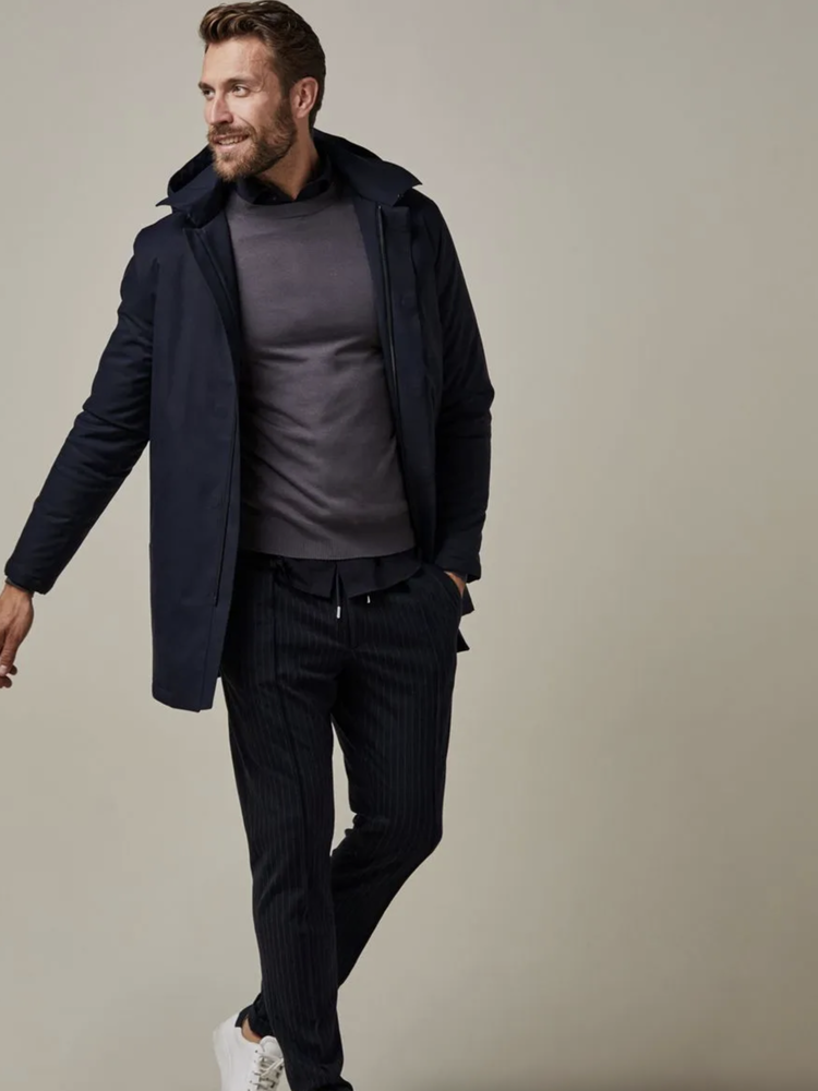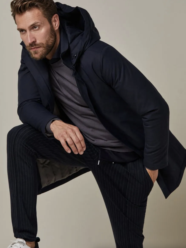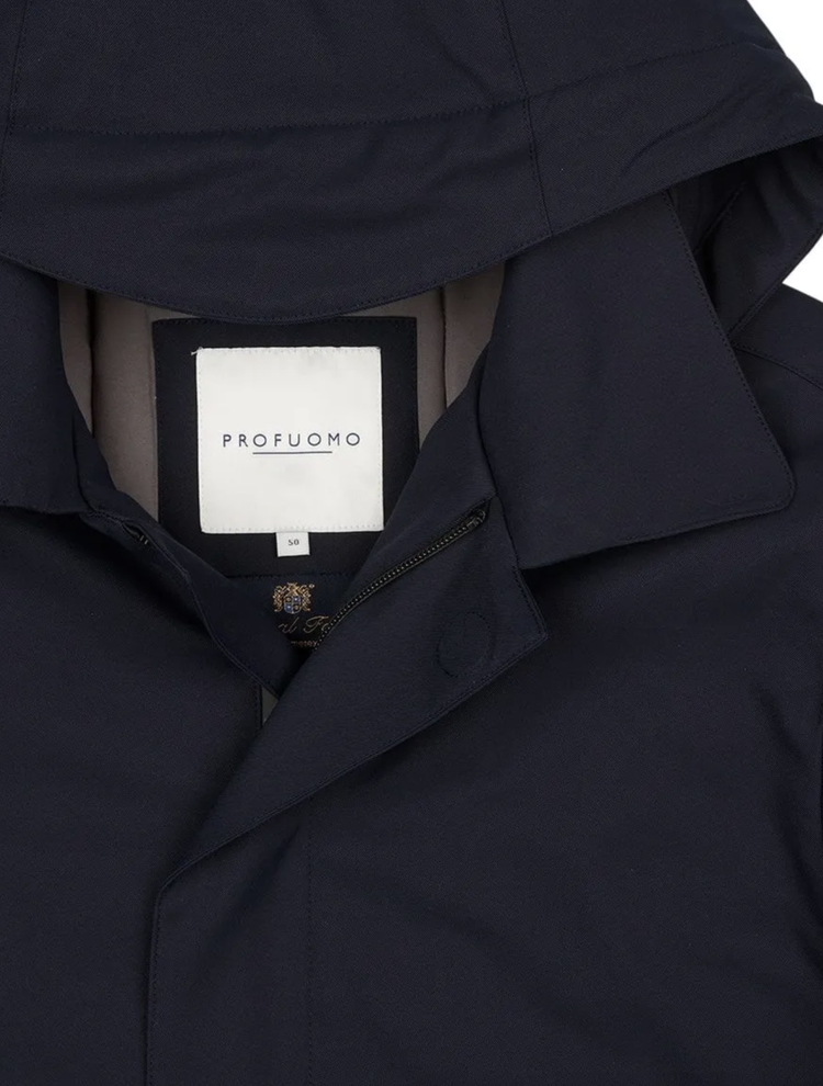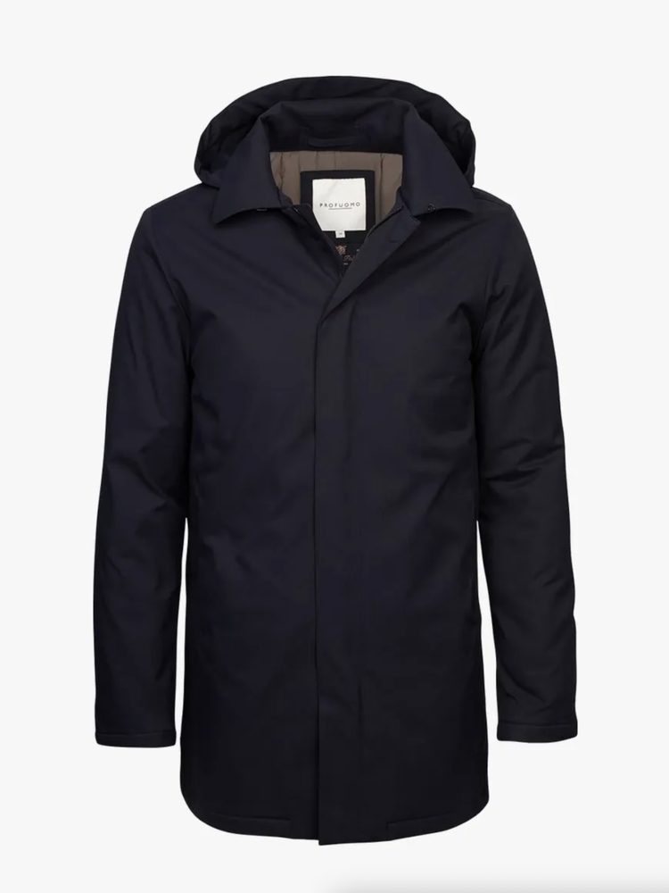 • A functional classic! Deze technical regenjas is gemaakt van een luxe Italiaanse stof, is windproof en water repellent. Magnetische knopen als sluiting over de ritssluiting, een afneembare capuchon en een tweeweg ritssluiting voor extra comfort.