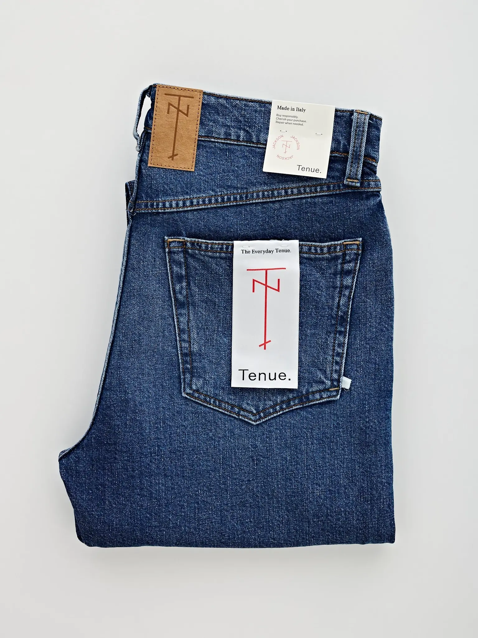 Our Tenue. Jackson jeans fill the gap for those who don’t want their jeans too loose, nor too slim. The Tenue. Jackson jeans have a relaxed top block and a high rise, combined with a nicely tailored 'tapered' leg. This means that the leg of our Jackson narrows down towards the foot.